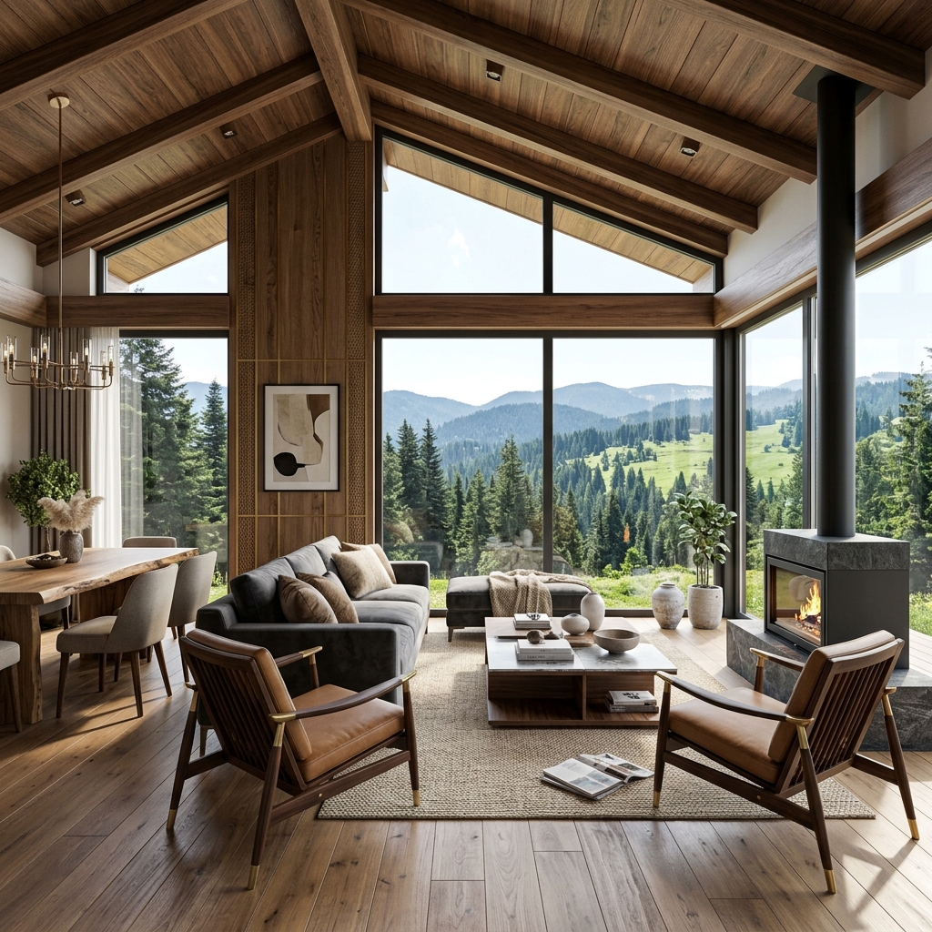 Dağ evi konseptine uygun, rustik ve masif ahşap ağırlıklı dekorasyon projeleri.