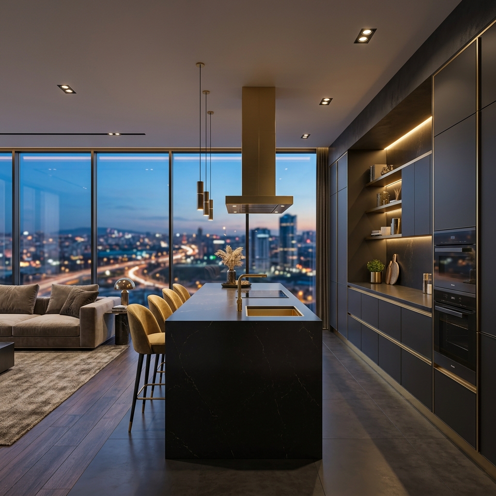 Ada Mutfak ve fonksiyonel tasarımlarda Yüzüncüyıl ve 29 Ekim gibi geniş daire planlarında ada üniteleri hem bir yemek masası hem de ek depolama alanı olarak kurgulanır. Blum veya Hettich menteşe teknolojileri ile sessiz kapanma ve maksimum yük taşıma kapasitesi sunuyoruz.